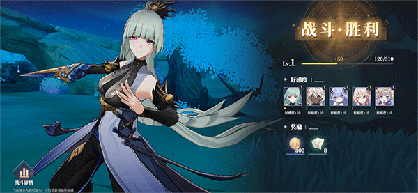 6、战斗胜利后可以获得一定经验值,好感度,以及各种奖励