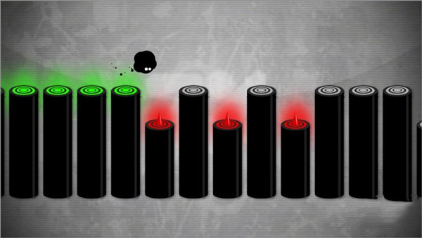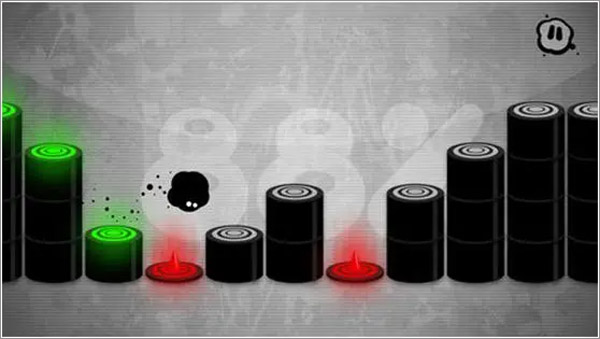 《give it up》与传统跑酷类游戏的区别在于,该游戏融入了高难度的节奏性挑战。在游戏里,玩家操控一个黑色的斑点小怪物,依靠反弹不断前行。当踩到白色的柱子后,柱子会变成绿色平台,玩家便能安全通过。当然,玩家还得避开红色的标志和柱子,一旦碰到红色障碍就会立刻死亡,玩起来着实比较虐心。
