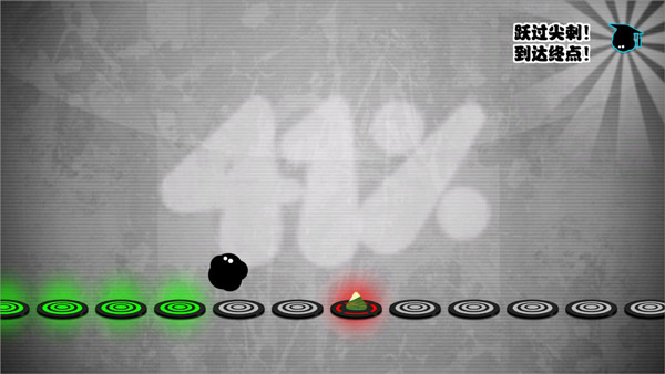 当遇到单个尖刺时,情况较为简单,只需把握好小墨球下落的时机,点击屏幕就能实现跳跃。要是点击太早或太晚,就会撞上尖刺而“死亡”。要是碰到两个尖刺,那就得连续点击屏幕,既要找准节奏,又要控制好手速。
