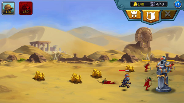 2、当玩家收集的战争矿产达到一定数量,就可以着手训练战争士兵啦。要知道,训练士兵是需要花费一定金钱的。等士兵训练完成后,点击下图中的位置图标,就能指挥您的火柴人军团向敌人营地发起进攻。