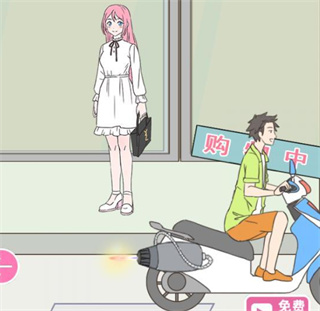 通关攻略:先点击第二张图获取小电驴,接着在第三张图中,多次点击购物中心的牌子以获取推进装备。之后回到第一张图,把小电驴给男主,并装上推进装备,最后点击开始。