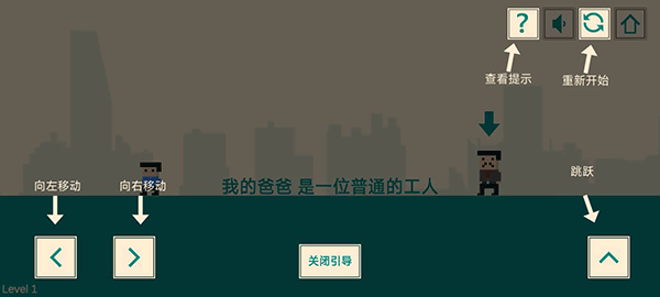 第一关:一开始会有一些引导,之后径直朝着父亲所在的方向走就可以。箭头所指之处便是目的地。