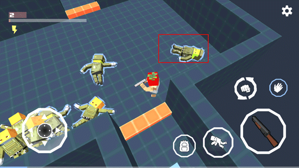 当你置身于一个封闭空间,周围全是敌人。此时,玩家需凭借射击与躲避来战胜这些敌人。待将所有敌人全部击倒后,同样靠近敌人,点击手形图标,你便能看到里面有大量金币。积累一定数量的金币,就能够购买威力强大的武器装备。