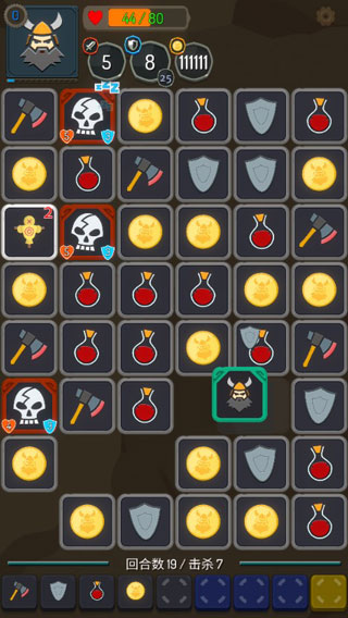 总体而言,这款游戏的玩法较为简单,然而其策略性却相当突出。玩家不仅要掌握常规的消除规则,如何规划勇士的行走路线,以及最大化利用“攻击”“护盾”“金币”“恢复”这四大类符文来击杀随机生成的 BOSS,才是游戏的关键所在。
