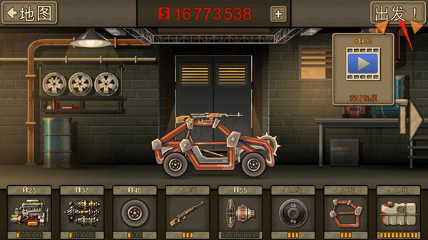 5、点击车库进入,可自由购买装备、武器、燃料等,再进行出发;