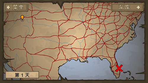 7、直到燃料耗尽,这一天才结束,可回到车库购买装备下一日出发;