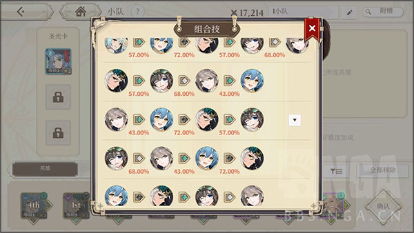 下图能看到组合技有多么的丰富,理论来讲这个b字阵是组合线最多的选择,以后小队加位置除外