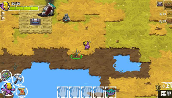 完成初始课程后,我们将置身于一个陌生星球。首要任务是收集材料来打造地板。材料收集完毕,点击左下角图标可进入地图界面,点击右上角小屋图标则能实现重生。在工具台获取地板后,点击右下角锤子图标开启建造模式,选中地板,在地图上的可建造空地放置。地板安置好后,可打造摆设放置其上。然而,我们暂时无法获取优质木材,因此得收集素材打造第一件工具——锯齿刀。获取锯齿刀后就能用它获取木材,但要留意,此时我们尚不具备攻击怪物的能力,收集过程中需避开附近怪物,不然会激怒它们招致攻击。收集完成,便可打造第二个工具台——锯木台。锯木台属于摆设品,在建造模式下,仅能放置在地板上,点击右下角图标可切换至摆设类物品。有了锯木台,就能利用木材打造物品,按照任务要求打造木制装甲与木制锯齿剑。获得这两件装备后,便有能力攻击怪物了。