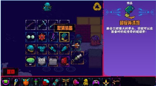 超级斧鱼饵:用分别从三个世界中的鱼塘掉到的武器进行融合而成的用于钓取超级斧的鱼饵。