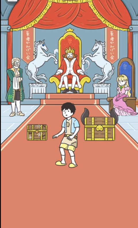 随后点击国王头顶的帷幔,帷幔展开后在顶部得到粉色宝石。得到粉色宝石后将粉色宝石交给右侧的公主。