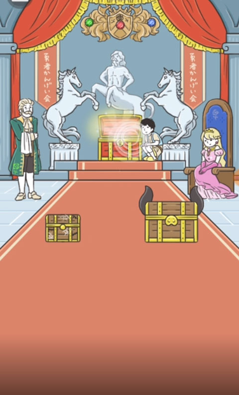将三颗宝石按照正确位置放置后,原本国王的位置会出现一个宝箱,点击宝箱即可换装过关。