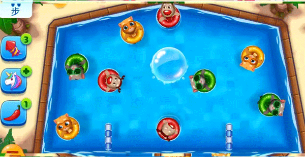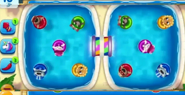 在游戏过程中,你会看到不少人物从滑梯上滑下。要留意,有时滑下来的人物会结冰。泳池里也常常会出现冰块,冰块中可能藏着辣椒和豆子,能帮你消除更多人物。玩法相当简单,只需在限定步数内,按游戏要求消除相应颜色的小伙伴,就能顺利通关!(技巧和普通关卡大致相同,偶尔也得靠运气!)