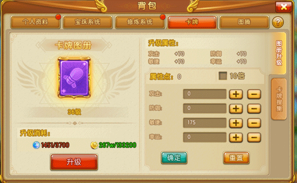 在游戏里,通过消耗卡魂(卡魂能够从秘境商店兑换获取,也可在邀请新人加入弹弹世界所获的礼包中得到)以及一定数量的金币来升级图册,如此便能获得属性点。弹友们可依据自身需求,把属性点分配到自己想要提升的属性上,实现又一轮实力提升。
