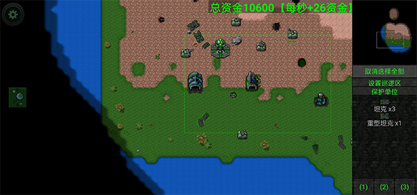 5、在多人游戏里,进入游戏之后,先造几座炮塔,用来保护中间区域。接着再造几辆坦克,负责守护后方位置。要是资金充裕,就多造些实验坦克和建造者。要是发现对手已经造出核弹且即将发射,别去造拦截核弹的设施,而是赶紧把建造者撤离到距离较远的地方。即便失去了基地也没关系,只要有建造者,就能重新打造一切。随后着手重建基地,展开对对手的反击。