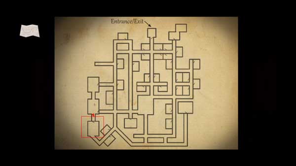 1游戏一开始,玩家身处出口旁的楼道里。在拿好桌上的地图后,即可着手寻找线索。游戏通关条件为收集散落在不同地方的书籍,当成功集齐八本书籍,再返回出口处,就能顺利通关。