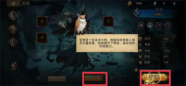 6、当然你也可以在英雄界面中,为指定的英雄进行升级,穿戴装备等来提升战力等