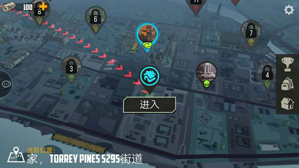 2、对于新手玩家来说小编不建议大家随意的去其他区域搜索冒险的,小编建议大家在家附近的几个地区去搜索物资,壮大自己,距离你家越远的地区僵尸就会越凶猛伤害越高。