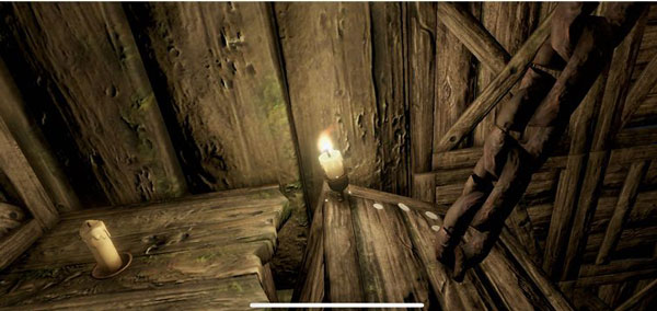 5、移动屏幕走到拐角处点燃第一根蜡烛;