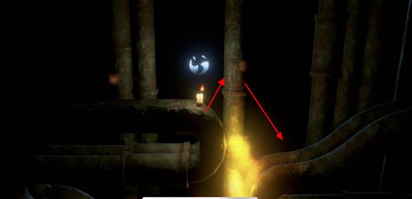第一章的第三关卡下方坐标在飘摇的后面藏着一根神秘的蜡烛。