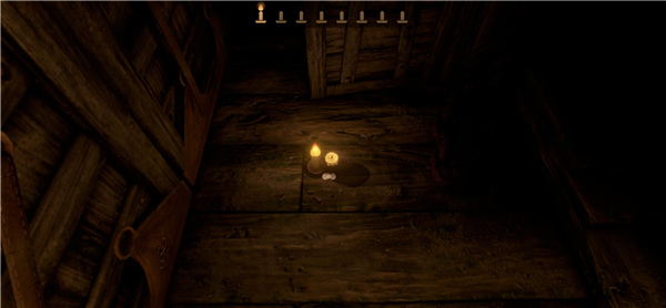 想必不少朋友都不知道,这块漂浮着的木盖板实际上是能够推动的。把它推过去然后跳上去,就会发现这里藏着一根超萌的蜡烛。
