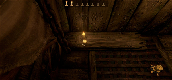 沿着此处铁链跳上去,上面有一根蜡烛,然后斜对面隐藏有一根蜡烛。