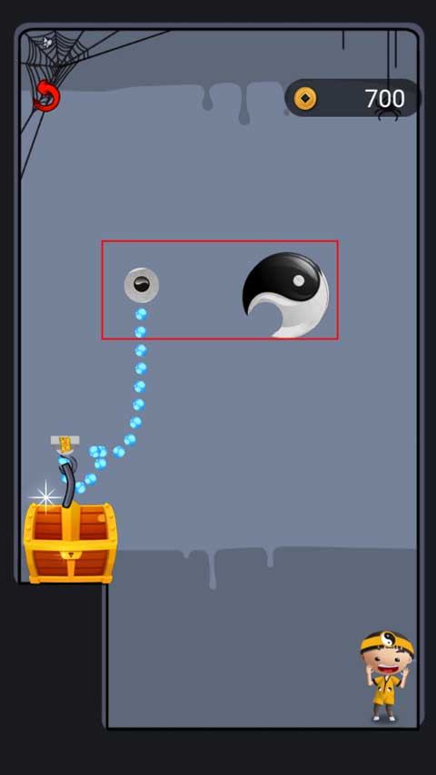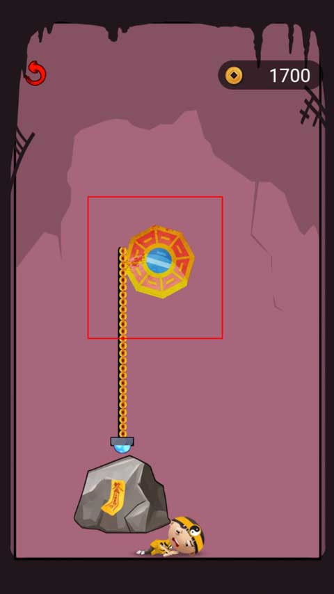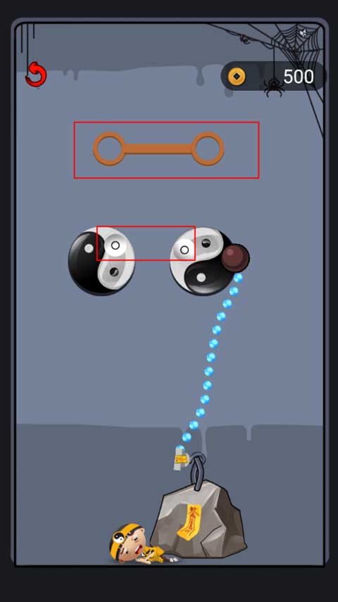 这关非常简单,同样是将干支表牛骨靠近铜币,它就会吸附并带动石头解救小道士。