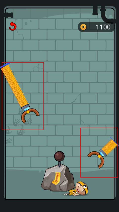 这一关就是混淆玩家,出现两个抓钩,只要拉动左边的抓钩即可。