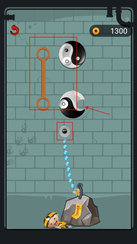 这关是需要拉动抓钩将下方的开关按钮抓住即可解救小道士。