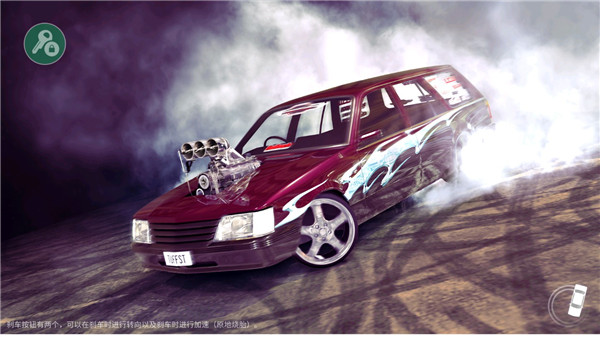 3、方向盘在左边,刹车和漂移功能在右边,依照提示操作,就能做出超酷炫的漂移。