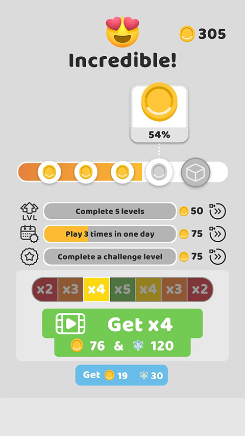 7、完成通关后,就能看到拼图、经验以及金币奖励。以上便是Tap Away的玩法。