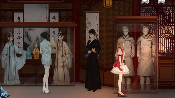 3、查看穿和服的女蜡像,点击对话;
