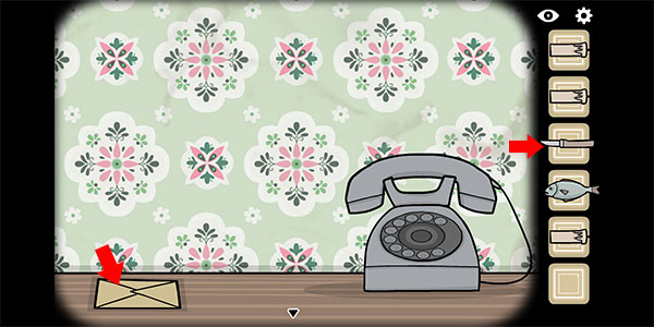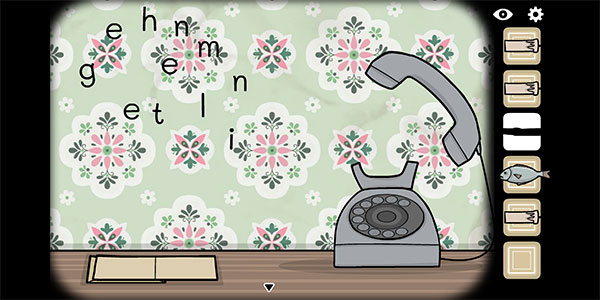 5、接着点击电话的听筒,然后按照之前的英文“enlighten me”的顺序,点击左上角的字母,这样就会掉下一盒火柴。