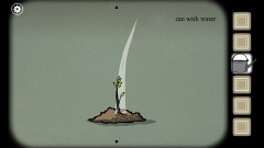 4、回到场景,有种子必然需要浇水,拾起路边的洒水壶,移动至旁边水井旁,挂上水壶,转动把手,获得纯天然井水一壶。