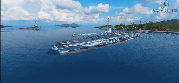 4、航空母舰能引发进水与火灾这两种持续性伤害。其中,进水效果在单个目标上同一时间仅能存在一个,不过其伤害更高,持续时间也更久,只是鱼雷致使进水的概率相对较低。而轰炸机造成火灾的概率极高,近乎必然发生,且火灾在舰艇上可同时存在四处,船头船尾各一处,中段两处。然而,单个火灾的伤害较低,持续时间也不及进水。一般情况下,敌方舰艇可借助“损管”消耗品来修复这些负面效果,并且在损管生效的一段时间内(因舰艇类型不同而有差异,最短5秒,最长28秒)不会再遭受负面效果影响。但损管同样存在冷却时间,其冷却时间也因舰艇而异,通常遵循战列舰>航空母舰 = 巡洋舰>驱逐舰的规律。