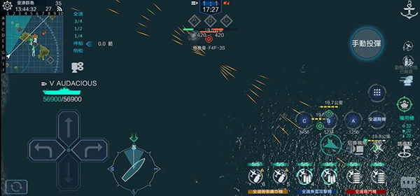6、一局游戏中,航母可携带的飞机数量是有限的,因此你得合理规划飞机的使用。界面右侧的备用机显示了你当前剩余可供备用的飞机数量(不包含正在使用的飞机)。那些具备高额防空能力船只的AA,对蜂拥而上的攻击机有着毁灭性的杀伤效果。要是一次性把所有攻击机都投入去攻击一个由冷却完毕且伤害高的AA所保护的目标,并非明智之举。不过,AA也存在持续时间和冷却时间,装备在巡洋舰与驱逐舰上的AA,一般持续30秒,冷却120秒(航空母舰本身有一个持续时间长达120秒,但一局只能使用一次的AA,用于自身防御)。