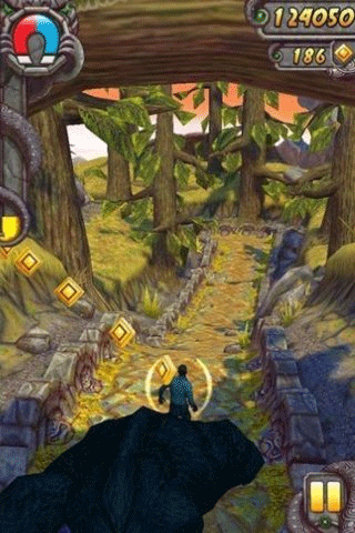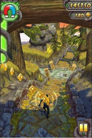 在游戏画面方面,《神庙逃亡2》不再是一代那般有棱有角,其细腻度、空间立体感以及游戏贴图质量基本上代表了跑酷游戏的较高水平。在色彩方面,二代较一代更为鲜亮真实。