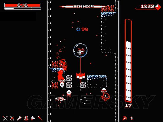 坠落深井(Downwell)的困难模式一般分为两大流派,一个是喷射鞋COMBO流,一个是刀叉流。