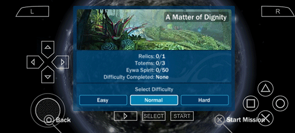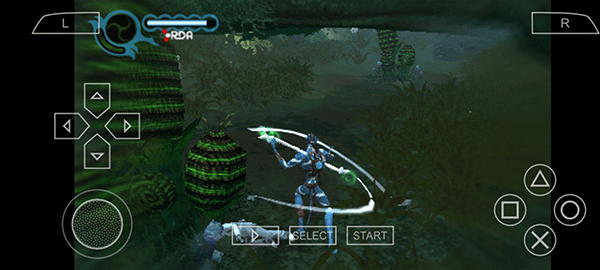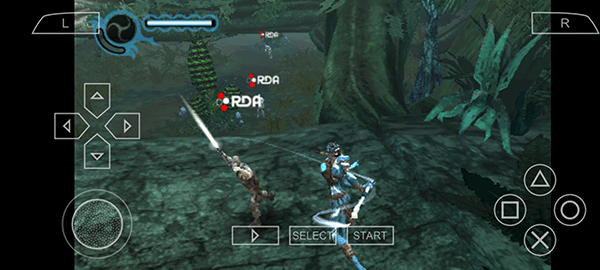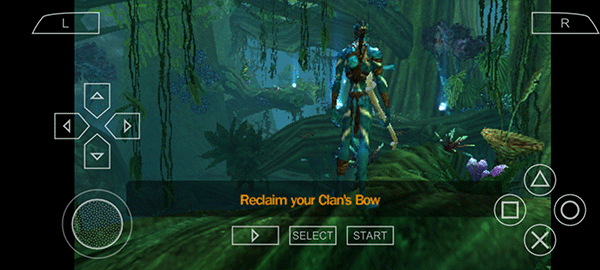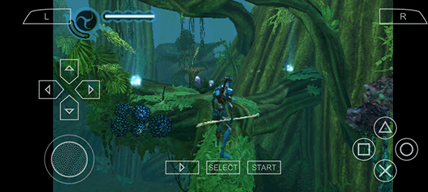 4、进入游戏后,玩家操控阿凡达展开冒险。其中,左边负责控制人物的移动方向,右边的方块、三角用于控制攻击,×号则用来控制跳跃等操作。