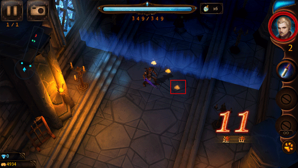3、通过滑动或点击屏幕的方式移动角色,将那些觊觎水晶的敌人全部打败,就可以获得道具、金币。