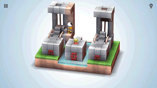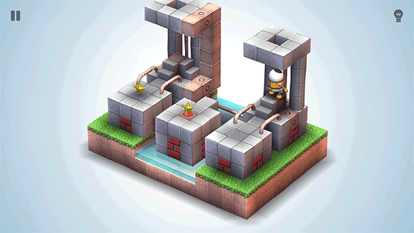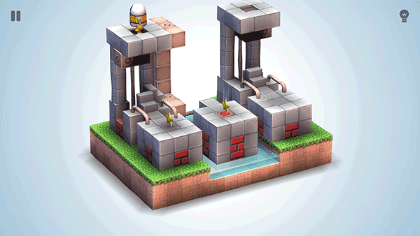 除了上述独特功能,这款游戏本身也是制作精良。画面充满浓郁的卡通风格,机器人物设定呆萌可爱,其独特的通过转换角度实现的视觉差游戏方式,都让它堪称佳作。