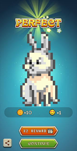 6、制作完成后,一只色彩斑斓的兔子便成功诞生啦。将它放置到你的像素岛屿上,就能提升你的等级,进而获取相应的奖励哟。