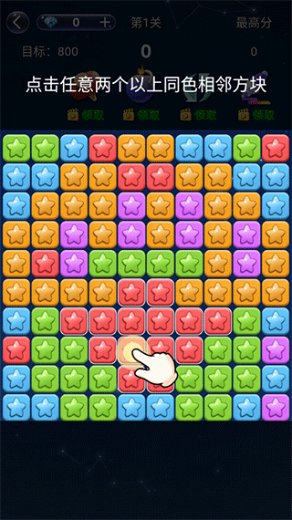 1、玩法超简单,消除相邻的2个或以上的同色星星。