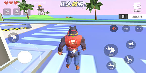 在游戏里,你将操控一只肌肉发达的猛犬展开自由冒险。你既可能成为城市中的英雄,也可能沦为恶霸。在持续维护正义的过程中提升自身技能,打败敌人后,能获取诸多奖励,用以实现自身进化,还能兑换更多武器。