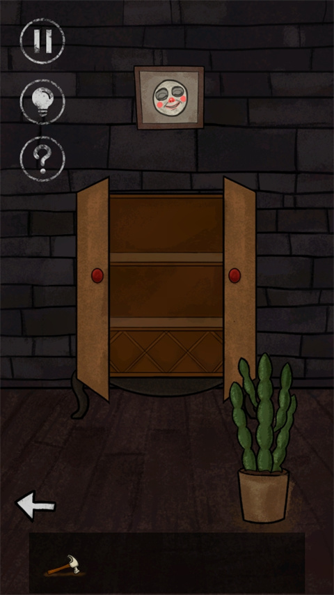 5、接着点击下一关卡,在场景里找到柜子并点击,再点击锤子,以此收集道具。