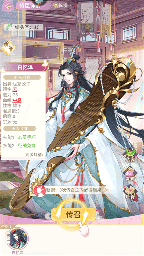 【广纳贤才 强化国力】 人才乃是国家发展的关键根基,于上凰而言亦是如此。针对招募而来的贤能之士开展演礼教学,能让他们熟悉上凰的礼仪规范,塑造独特的性格特质,进而获取不同的战斗或生活技能。完成演礼的贤才,既能够前往他国出任官职,增进国与国之间的往来,构建友好关系;倘若您心中有所不舍,也可将他们留下,辅助自己治理国家,亦或是让他们与出征的侍从一同经受历练,这些皆是颇为不错的选择。
