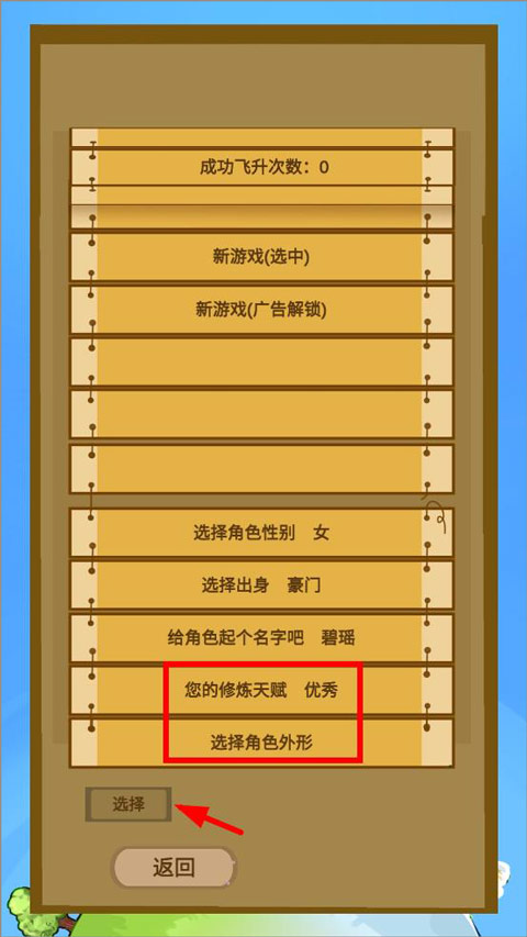 3、输入名字后,玩家继续选择修炼天赋以及角色外形;