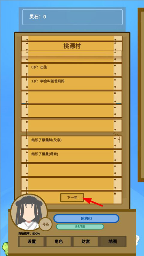 4、完成外形设置后,便可开启游戏。玩家初始角色年龄较小,可直接点击“下一年”,快速进入开蒙时期。