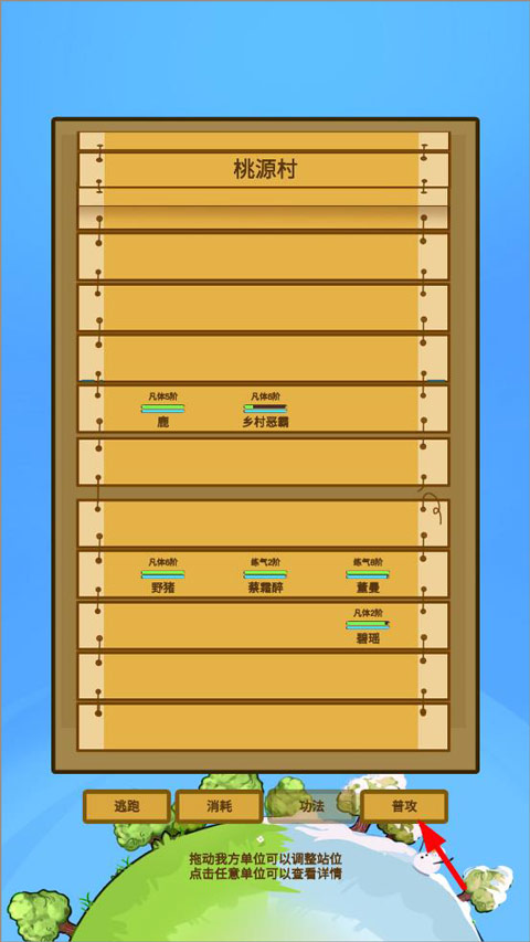 5、在游戏里,若玩家遭遇欺负,可选择向霸凌者发起挑战。通过拖动我方角色,能够调整站位,点击普攻按钮即可展开攻击。