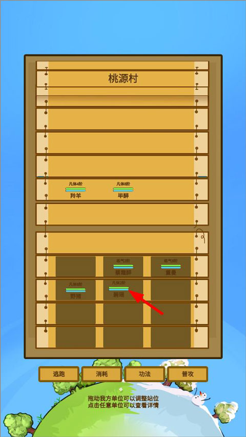 1、当玩家在游戏里遭遇需要进行反抗的敌人时,可以通过拖动我方游戏角色的姓名来调整站位。