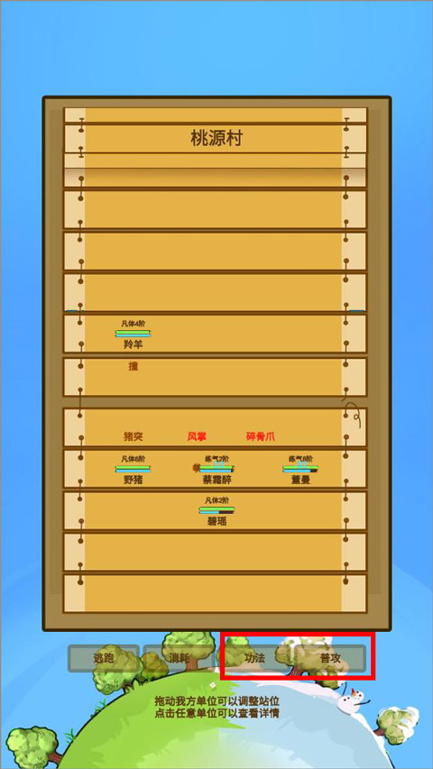 2、调整好站位后,点击普攻和功法即可击败敌人;